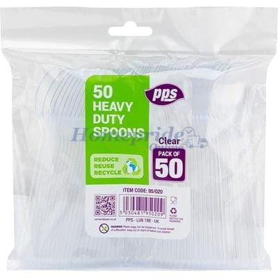 PPS HEAVY DUTY SPOONS CLEAR CUTLERY 50PACK