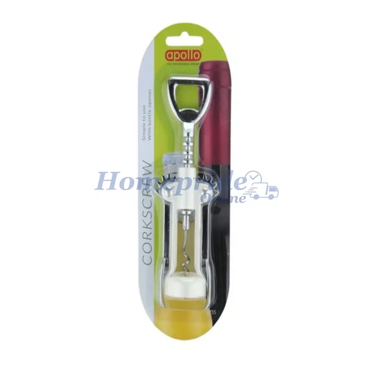 Open your bottles in style with a shining stainless steel metal corkscrew. It also features a bottle opener and traditional design.
