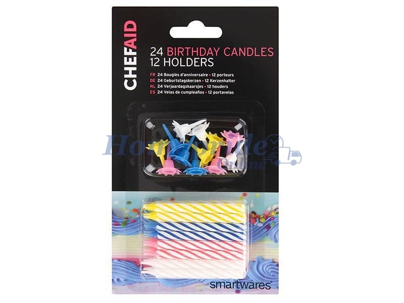 Make someone’s birthday even more special by using candle decorations! There is 24 candles in assorted colours and 12 holders in a pack.
